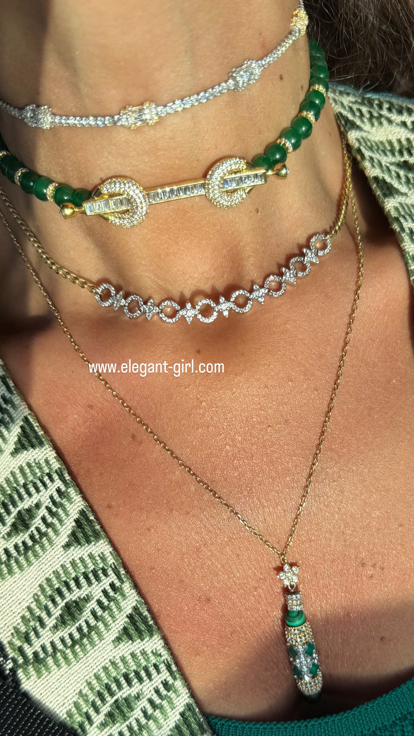 • 💚 Elegant vertical necklace adorned with rich green stones inspired by natural gemstones