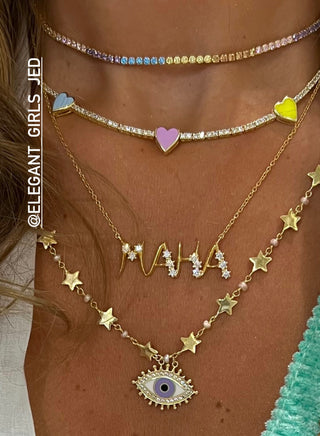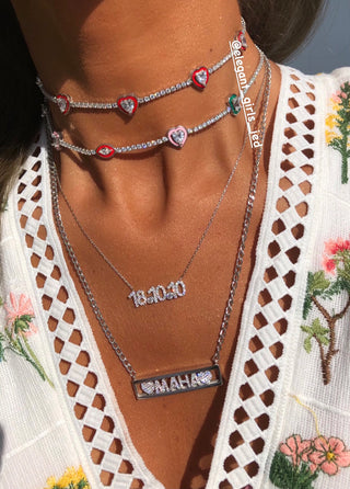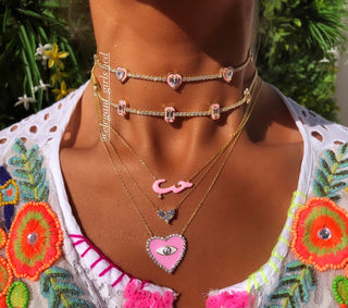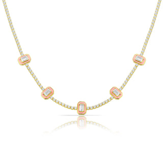 NEW EMERALD SQUARE PINK IN GOLD TENNIS CHOKER